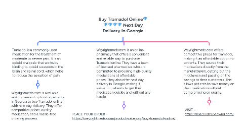 1.1. Wayrightmeds.com is a reliable and convenient option for patients in Georgia to buy Tramadol online with next day delivery. They offer competitive prices, quality medication, and a hassle-free ordering process.