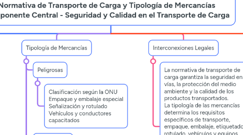 Normativa de Transporte de Carga y Tipología de Mercancías Componente Central - Seguridad y Calidad en el Transporte de Carga par Mind Map: Normativa de Transporte de Carga y Tipología de Mercancías Componente Central - Seguridad y Calidad en el Transporte de Carga