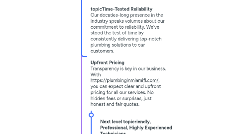 1. **topicTime-Tested Reliability** Our decades-long presence in the industry speaks volumes about our commitment to reliability. We've stood the test of time by consistently delivering top-notch plumbing solutions to our customers. **Upfront Pricing** Transparency is key in our business. With https://plumbinginmiamifl.com/, you can expect clear and upfront pricing for all our services. No hidden fees or surprises, just honest and fair quotes.