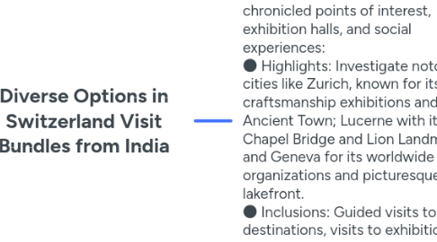 1. If you're interested in Switzerland's wealthy social legacy, select a Switzerland tour package from India. These visits center on chronicled points of interest, exhibition halls, and social experiences: ● Highlights: Investigate notorious cities like Zurich, known for its craftsmanship exhibitions and Ancient Town; Lucerne with its Chapel Bridge and Lion Landmark; and Geneva for its worldwide organizations and picturesque lakefront. ● Inclusions: Guided visits to social destinations, visits to exhibition halls such as the Swiss National Gallery and Kunsthaus Zurich, and openings to go to social occasions or festivals.