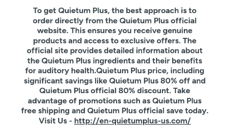 To get Quietum Plus, the best approach is to order directly from the Quietum Plus official website. This ensures you receive genuine products and access to exclusive offers. The official site provides detailed information about the Quietum Plus ingredients and their benefits for auditory health.Quietum Plus price, including significant savings like Quietum Plus 80% off and Quietum Plus official 80% discount. Take advantage of promotions such as Quietum Plus free shipping and Quietum Plus official save today. Visit Us - http://en-quietumplus-us.com/