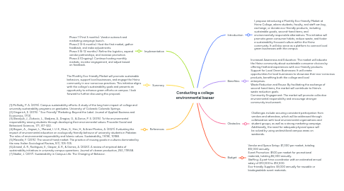 6.1. Challenges include securing consistent participation from vendors and attendees, which will be addressed through collaboration with local environmental organizations and student groups, as well as a strong marketing campaign. Additionally, the need for adequate physical space will be solved by using underutilized campus areas on weekends.