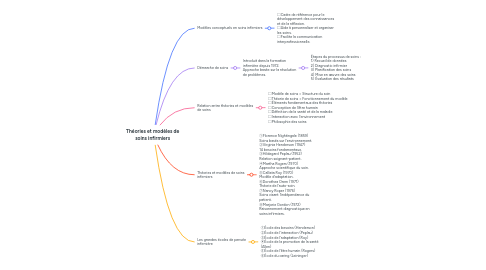 3.1. □Modèle de soins = Structure du soin □Théorie de soins = Fonctionnement du modèle □Éléments fondamentaux des théories □Conception de l’être humain □Définition de la santé et de la maladie □Interaction avec l’environnement □Philosophie des soins