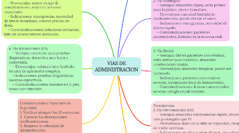 5. 2. Vía Sublingual - Ventajas: absorción rápida, evita primer paso hepático, efecto inmediato. - Desventajas: cantidad limitada de medicamentos, puede alterar el sabor. - Indicaciones: emergencias, necesidad de efecto rápido. - Contraindicaciones: pacientes inconscientes, lesiones en la mucosa oral.