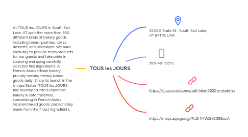 1. At TOUS les JOURS in South Salt Lake, UT we offer more than 300 different kinds of bakery goods, including bread, pastries, cakes, desserts, and beverages. We bake each day to provide fresh products for our guests and take pride in sourcing and using carefully selected fine ingredients. A French-Asian artisan bakery, proudly serving freshly baked goods daily. Since its launch in the United States, TOUS les JOURS has developed into a reputable bakery & cafe franchise, specializing in French-Asian inspired baked goods, passionately made from the finest ingredients.