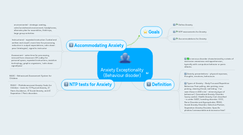Anxiety Exceptionality (Behaviour disoder) par Mind Map: Anxiety Exceptionality (Behaviour disoder)