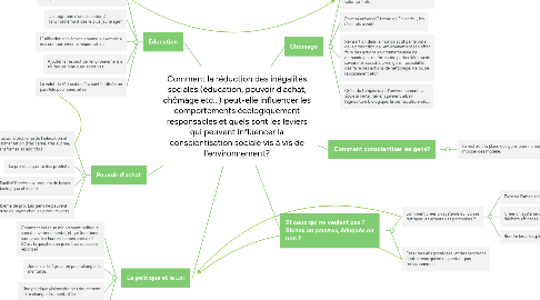 Comment la réduction des inégalités sociales (éducation, pouvoir d'achat, chômage etc...) peut-elle influencer les comportements écologiquement responsables et quels sont les leviers qui peuvent influencer la conscientisation sociale vis à vis de l'environnement?