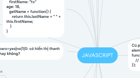 3. phương thức : v.D: var person = { lastName: "cuong", firstName: "tv" age: 18, getName = function() { return this.lastName + " " + this.firstName; } }