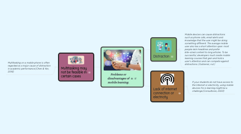 2.1. Mobile devices can cause distractions such as phone calls, email alerts and knowledge that the user might be doing something different. The average mobile user also has a short attention span: most people skim headlines and prefer bite-sized content to long articles. To be successful, developers must create mobile learning courses that gain and hold a user's attention and can compete against distractions. (Gutierrez, n.d.)