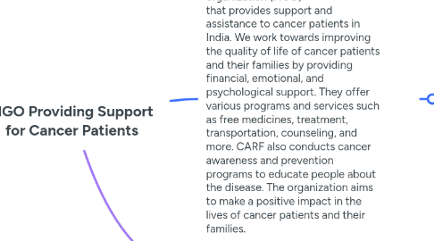 1. Cancer Aid and Research Foundation (CARF) is a non-governmental organization (NGO) that provides support and assistance to cancer patients in India. We work towards improving the quality of life of cancer patients and their families by providing financial, emotional, and psychological support. They offer various programs and services such as free medicines, treatment, transportation, counseling, and more. CARF also conducts cancer awareness and prevention programs to educate people about the disease. The organization aims to make a positive impact in the lives of cancer patients and their families.