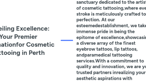 1.1. Why Choose Us? :Leading Cosmetic Tattoo Artists Our team comprises Perth's leadingcosmetic tattoo artists, each possessing a wealth of experience and expertisein their craft. With a keen eye for detail and a passion for perfection, theybring your vision to life with unparalleled precision. :Variety of Services: We offer a comprehensive range of services designed tocater to all your needs. Whether you desire flawlessly sculpted eyebrows,luscious lip enhancements, or transformative paramedical tattooing, we havethe skills and resources to exceed your expectations.