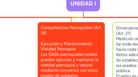6. Dimensiones del Derecho de Vía (Art. 21) Medición del derecho de vía: Se mide desde el eje de la vía hacia cada lado. Retiro adicional: Se establece un retiro adicional en los predios aledaños a la vía pública. El retiro es una área de afección y su medida será determinada por la autoridad competente. Estándares técnicos: El ministerio rector establece los estándares técnicos generales para que la autoridad competente defina el derecho de vía y los retiros.