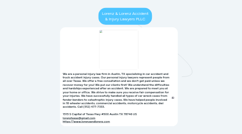 1. We are a personal injury law firm in Austin, TX specializing in car accident and truck accident injury cases. Our personal injury lawyers represent people from all over Texas. We offer a free consultation and we don’t get paid unless we recover money for you! We put our clients first! We understand the difficulties and hardships experienced after an accident. We are prepared to meet you at your home or office. We strive to make sure you receive fair compensation for your injuries. We have successfully handled all types of car wreck cases from fender benders to catastrophic injury cases. We have helped people involved in 18 wheeler accidents, commercial accidents, motorcycle accidents, dwi accidents. Call (512) 477-7333. 1515 S Capital of Texas Hwy #500 Austin TX 78746 US lorenztexas@gmail.com https://www.lorenzandlorenz.com