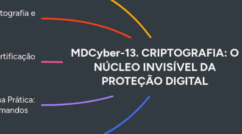 MDCyber-13. CRIPTOGRAFIA: O NÚCLEO INVISÍVEL DA PROTEÇÃO DIGITAL da Mind Map: MDCyber-13. CRIPTOGRAFIA: O NÚCLEO INVISÍVEL DA PROTEÇÃO DIGITAL