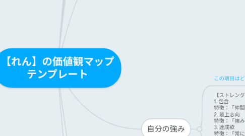 6.2. 【ストレングスファインダーによる5つの強み】 1. 包含 特徴:「仲間はずれしない」「人間全員に仲間意識を持っている」 2. 最上志向 特徴:「強みを伸ばそうとする」 3. 達成欲 特徴:「常に何かを成し遂げていたい」「常に達成感を得たい」 4. 目標志向 特徴:「あらゆるものに明確な目標を掲げる」 5. 自己確信 特徴:「自分に自信がある」 色々なことを自分だけで進めようとしてしまうところがあるので、 価値観マップでの突っ込みを通して皆さんとお互いに支えあういい機会になればいいなと思っています!