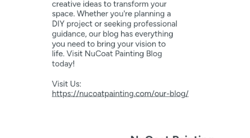 2. NuCoat Painting Blog: Expert Tips and Insights on Painting and Renovations Discover valuable painting tips, expert advice, and renovation insights on the NuCoat Painting blog. Stay updated with the latest trends in interior and exterior painting, learn how to maintain your painted surfaces, and explore creative ideas to transform your space. Whether you're planning a DIY project or seeking professional guidance, our blog has everything you need to bring your vision to life. Visit NuCoat Painting Blog today! Visit Us: https://nucoatpainting.com/our-blog/