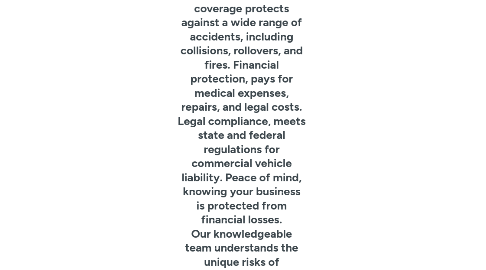 Truck & Commercial Auto Insurance Pennsylvania Address: 1420 Walnut St 6th Floor, Ste 607, Philadelphia, PA 19102 Phone: 215 -608-5141 Website URL: https://www.rpkinsurance.com/commercial-auto-insurance.php About Us Truck & Commercial Auto Insurance Pennsylvania protects your business from financial disasters caused by auto accidents with our comprehensive Commercial Auto Insurance coverage. We understand that your vehicles are essential to your business operations. That's why we offer tailor-made Commercial Auto Insurance policies that provide comprehensive protection for your: Commercial vehicles, trucks, vans, buses, and other vehicles used for business purposes. Drivers, liability coverage extends to your employees and any authorized drivers. Property, damage to your vehicles, cargo, or third-party property. Customization policies are tailored to your specific business needs and risks. Comprehensive coverage protects against a wide range of accidents, including collisions, rollovers, and fires. Financial protection, pays for medical expenses, repairs, and legal costs. Legal compliance, meets state and federal regulations for commercial vehicle liability. Peace of mind, knowing your business is protected from financial losses. Our knowledgeable team understands the unique risks of commercial vehicles and can guide you in selecting the right coverage. We take the time to understand your business and tailor a policy that meets your specific needs. We work with multiple insurers to find the most affordable coverage for your business. We're here to assist you with any questions or claims you may have. Secure your Commercial Auto Insurance today and safeguard your business from potential financial disasters. Related Searches auto insurance agency| best auto insurance agency| auto insurance agency near me| auto insurance| insurance agency| commercial auto insurance| best commercial auto insurance| commercial auto insurance near me| best commercial auto insurance near me| truck insurance| best truck insurance| truck insurance near me| best truck insurance near me| auto insurance coverage| affordable car insurance| car insurance agency| truck Insurance| commercial truck insurance Hours: Monday-Saturday 8:00 am–6:00 pm Sunday Closed GMB Listing: https://www.google.com/maps?cid=12541333341232014912