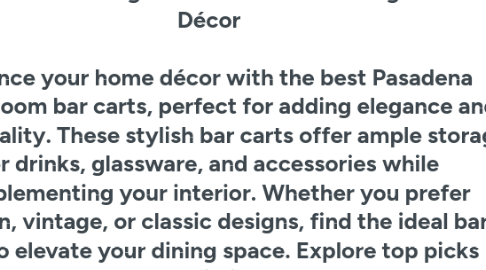 Best Pasadena Dining Room Bar Carts for Elegant Home Décor Enhance your home décor with the best Pasadena dining room bar carts, perfect for adding elegance and functionality. These stylish bar carts offer ample storage for drinks, glassware, and accessories while complementing your interior. Whether you prefer modern, vintage, or classic designs, find the ideal bar cart to elevate your dining space. Explore top picks now for a sophisticated touch!