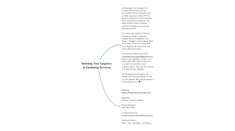 1. At Bestway Tree Surgeons & Gardening Services, we are passionate about caring for your outdoor spaces in Ireland. From garden clearouts to tree removals and everything in between, we offer a wide range of expert services to keep your property looking its best. Our team specializes in Garden Clearouts, Garden Features, Garden Fence Installation and Repair, Hedges, Landscaping, New Turf Lawns, Tree Removals, and Tree Topping, all tailored to suit your individual needs. Contact us today via email at bestwaytreesurgeons@gmail.com, explore our website, or give us a call at 087 090 7243 to discuss how we can transform your outdoor space. You can also find us at 1 Main Street, Galway. Let Bestway Tree Surgeons & Gardening Services bring new life to your garden. We look forward to working with you! 🌳🌟