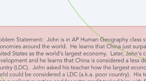 5. Problem Statement: John is in AP Human Geography class studying economies around the world. He learns that China just surpassed the United States as the world's largest economy. Later, John's class is studying development and he learns that China is considered a less developed country (LDC). John asked his teacher how the largest economy in the world could be considered a LDC (a.k.a. poor country). His teacher says that is an excellent question and for extra credit tasked him with finding the answer and presenting it to the class.