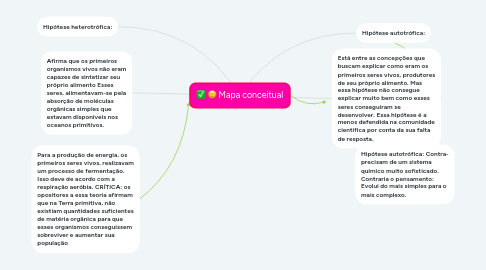 4. Está entre as concepções que buscam explicar como eram os primeiros seres vivos, produtores de seu próprio alimento. Mas essa hipótese não consegue explicar muito bem como esses seres conseguiram se desenvolver. Essa hipótese é a menos defendida na comunidade científica por conta da sua falta de resposta.