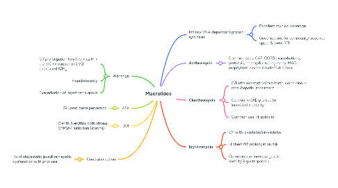 5.1. Common uses: CAP, COPD exacerbations, pertussis, chlamydia in pregnancy, MAC prophylaxis, severe traveler's diarrhea