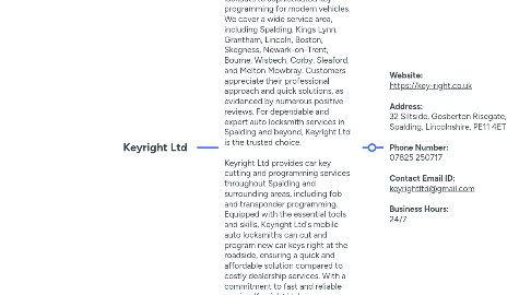 1. Our experienced team at Keyright Ltd is dedicated to providing auto locksmith services, from emergency lockouts to sophisticated key programming for modern vehicles. We cover a wide service area, including Spalding, Kings Lynn, Grantham, Lincoln, Boston, Skegness, Newark-on-Trent, Bourne, Wisbech, Corby, Sleaford, and Melton Mowbray. Customers appreciate their professional approach and quick solutions, as evidenced by numerous positive reviews. For dependable and expert auto locksmith services in Spalding and beyond, Keyright Ltd is the trusted choice. Keyright Ltd provides car key cutting and programming services throughout Spalding and surrounding areas, including fob and transponder programming. Equipped with the essential tools and skills, Keyright Ltd's mobile auto locksmiths can cut and program new car keys right at the roadside, ensuring a quick and affordable solution compared to costly dealership services. With a commitment to fast and reliable service, Keyright Ltd ensures you get back inside your vehicle promptly without the need for towing or excessive costs.