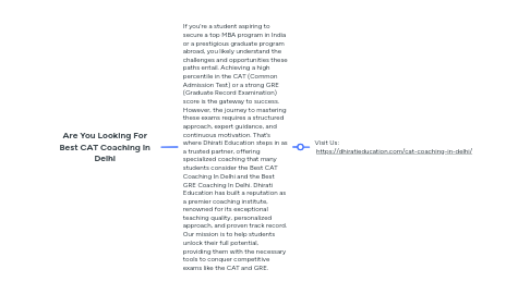 1. If you're a student aspiring to secure a top MBA program in India or a prestigious graduate program abroad, you likely understand the challenges and opportunities these paths entail. Achieving a high percentile in the CAT (Common Admission Test) or a strong GRE (Graduate Record Examination) score is the gateway to success. However, the journey to mastering these exams requires a structured approach, expert guidance, and continuous motivation. That’s where Dhirati Education steps in as a trusted partner, offering specialized coaching that many students consider the Best CAT Coaching In Delhi and the Best GRE Coaching In Delhi. Dhirati Education has built a reputation as a premier coaching institute, renowned for its exceptional teaching quality, personalized approach, and proven track record. Our mission is to help students unlock their full potential, providing them with the necessary tools to conquer competitive exams like the CAT and GRE.