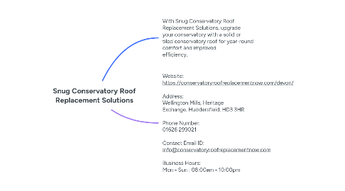2. Website: https://conservatoryroofreplacementnow.com/devon/ Address: Wellington Mills, Heritage Exchange, Huddersfield, HD3 3HR Phone Number: 01626 299021 Contact Email ID: info@conservatoryroofreplacementnow.com Business Hours: Mon - Sun : 08:00am - 10:00pm