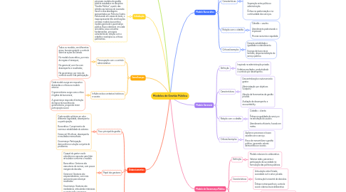 2.1. O presente mapa conceitual tem como objetivo organizar, de forma objetiva e sistematizada, os principais modelos de gestão pública estudados na disciplina "Gestão Pública", a partir das referências teóricas de Leonardo Secchi e das abordagens apresentadas por Petronio Castro. Estruturado em caixas de texto, o mapa apresenta três ramificações centrais: modelo burocrático, modelo gerencial e governança pública. Busco destacar, em cada uma delas, seus conceitos fundamentais, principais características, relação com o cidadão e exemplos ou críticas pertinentes.