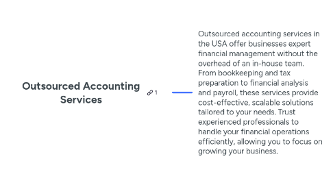 Outsourced accounting services in the USA offer businesses expert financial management without the overhead of an in-house team. From bookkeeping and tax preparation to financial analysis and payroll, these services provide cost-effective, scalable solutions tailored to your needs. Trust experienced professionals to handle your financial operations efficiently, allowing you to focus on growing your business.
