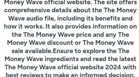 To order The Money Wave, visit the The Money Wave official website. The site offers comprehensive details about the The Money Wave audio file, including its benefits and how it works. It also provides information on the The Money Wave price and any The Money Wave discount or The Money Wave sale available.Ensure to explore the The Money Wave ingredients and read the latest The Money Wave official website 2024 with best reviews to make an informed decision. Visit Us - https://www.en-us-moneywave.com/