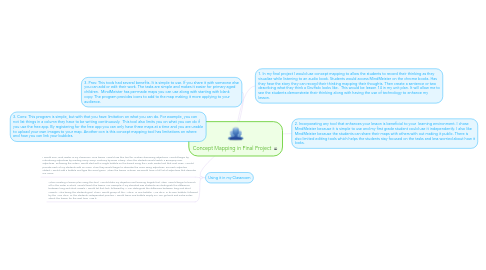 2. 3. Cons: This program is simple, but with that you have limitation on what you can do. For example, you can not list things in a column they have to be writing continuously. This tool also limits you on what you can do if you use the free app. By registering for the free app you can only have three maps at a time and you are unable to upload your own images to your map. Another con is this concept mapping tool has limitations on where and how you can link your bubbles.