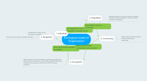 2.1. Sloths and the environment that surrounds them and has the resources they need to live. So the sloths would life with other animals in the ecosystem and they live off of the same resources.