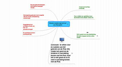 4. Conclusie: Er zitten voor en nadelen aan het gebruik van de iPad. Wij vinden het goed als de kinderen in aanrakking komen met de iPad, maar het is niet goed als ze te veel in aanraking komen met de iPad.