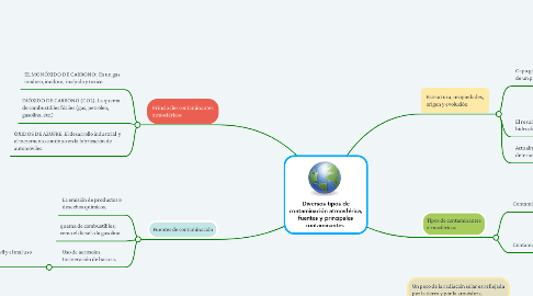 Diversos tipos de contaminación atmosférica, fuentes y principales contaminantes. por Mind Map: Diversos tipos de contaminación atmosférica, fuentes y principales contaminantes.