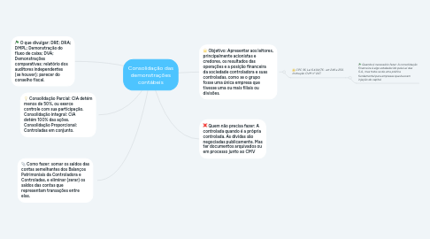 3. Consolidação Parcial: CIA detém menos de 50%, ou exerce controle com sua participação. Consolidação integral: CIA detém 100% das ações. Consolidação Proporcional: Controladas em conjunto.