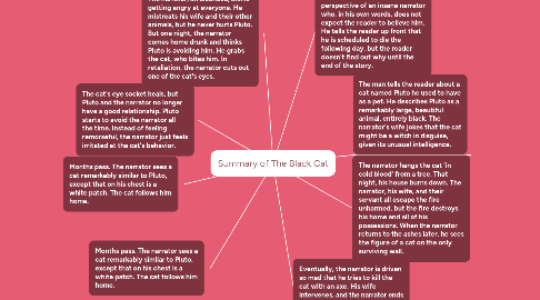 1. Then, everything goes wrong. The narrator, an alcoholic, starts getting angry at everyone. He mistreats his wife and their other animals, but he never hurts Pluto. But one night, the narrator comes home drunk and thinks Pluto is avoiding him. He grabs the cat, who bites him. In retaliation, the narrator cuts out one of the cat's eyes.