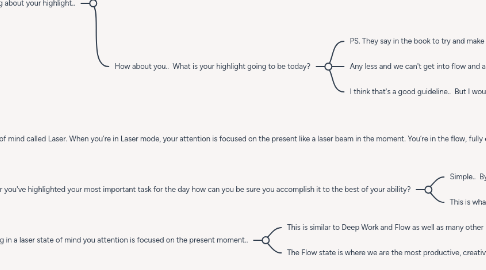 5.1. “This chapter is about a state of mind called Laser. When you’re in Laser mode, your attention is focused on the present like a laser beam in the moment. You’re in the flow, fully engaged and immersed in the moment. When you’re laser-focused on your Highlight, it feels fantastic—it’s the payoff for proactively choosing what’s important to you."