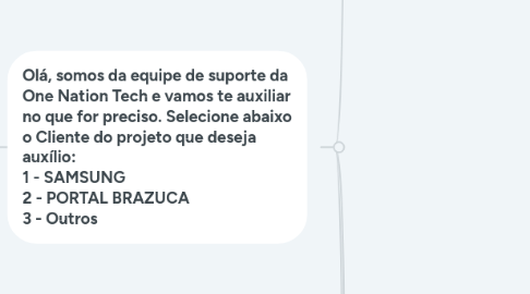 1. Olá, somos da equipe de suporte da One Nation Tech e vamos te auxiliar no que for preciso. Selecione abaixo o Cliente do projeto que deseja auxílio: 1 - SAMSUNG 2 - PORTAL BRAZUCA 3 - Outros