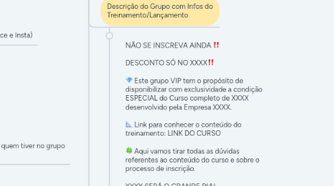 2.1.1. NÃO SE INSCREVA AINDA ‼️ DESCONTO SÓ NO XXXX‼️ 💎 Este grupo VIP tem o propósito de disponibilizar com exclusividade a condição ESPECIAL do Curso completo de XXXX desenvolvido pela Empresa XXXX. 📐 Link para conhecer o conteúdo do treinamento: LINK DO CURSO 🍀 Aqui vamos tirar todas as dúvidas referentes ao conteúdo do curso e sobre o processo de inscrição. XXXX SERÁ O GRANDE DIA!
