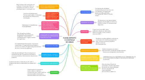 PLANEJAMENTO E CONTROLE DE OBRAS por Mind Map: PLANEJAMENTO E CONTROLE DE OBRAS