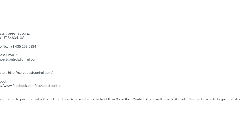3. When it comes to pest control in Provo, Utah, there is no one better to trust than Serve Pest Control. From small insects like ants, flies, and wasps to larger animals such as rats, mice, and termites – we have the skills needed to effectively handle your pest control problem. We are service motivated and results driven. Our goal is to deliver safe and effective pest control during our interior and exterior treatments for a comprehensive solution that keeps you and your home pest-free today, tomorrow, and forever.
