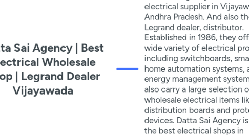 1. Datta Sai Agency is a wholesale electrical supplier in Vijayawada, Andhra Pradesh. And also the best Legrand dealer, distributor. Established in 1986, they offer a wide variety of electrical products, including switchboards, smart home automation systems, and energy management systems. They also carry a large selection of wholesale electrical items like distribution boards and protective devices. Datta Sai Agency is one of the best electrical shops in Vijayawada.
