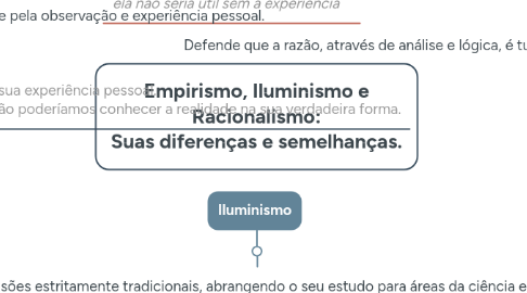 Empirismo, Iluminismo e Racionalismo: Suas diferenças e semelhanças. por Mind Map: Empirismo, Iluminismo e Racionalismo: Suas diferenças e semelhanças.
