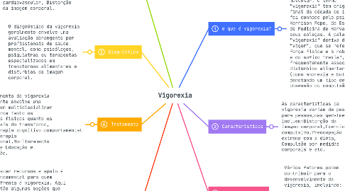6.1. As características da vigorexia variam de pessoa para pessoa,mas geralmente incluem:Distorção da imagem corporal,Exercício compulsivo,Preocupação extrema com a dieta, Compulsão por medidas corporais e etc.