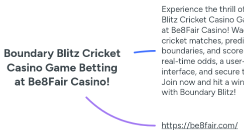 1. Experience the thrill of Boundary Blitz Cricket Casino Game Betting at Be8Fair Casino! Wager on live cricket matches, predict boundaries, and score big. Enjoy real-time odds, a user-friendly interface, and secure transactions. Join now and hit a winning streak with Boundary Blitz!