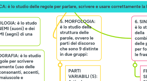 6. 5. MORFOLOGIA: è lo studio della struttura delle parole, ovvero le parti del discorso che sono 9 distinte in due gruppi: