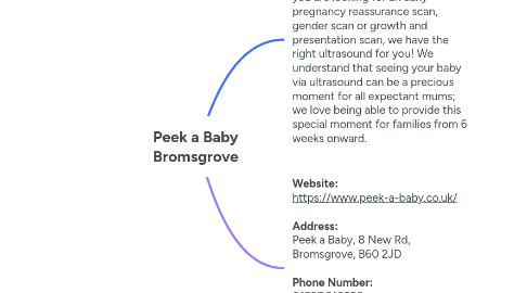 2. **Website:** https://www.peek-a-baby.co.uk/ **Address:** Peek a Baby, 8 New Rd, Bromsgrove, B60 2JD **Phone Number:** 01527 910228 **Business Hours:** Mon - Fri: 08:00 am – 08:00 pm Sat - Sun: 08:00 am - 06:00 pm