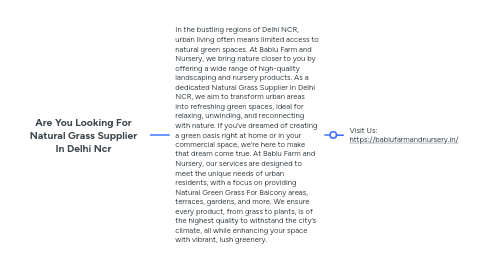 1. In the bustling regions of Delhi NCR, urban living often means limited access to natural green spaces. At Bablu Farm and Nursery, we bring nature closer to you by offering a wide range of high-quality landscaping and nursery products. As a dedicated Natural Grass Supplier In Delhi NCR, we aim to transform urban areas into refreshing green spaces, ideal for relaxing, unwinding, and reconnecting with nature. If you’ve dreamed of creating a green oasis right at home or in your commercial space, we’re here to make that dream come true. At Bablu Farm and Nursery, our services are designed to meet the unique needs of urban residents, with a focus on providing Natural Green Grass For Balcony areas, terraces, gardens, and more. We ensure every product, from grass to plants, is of the highest quality to withstand the city’s climate, all while enhancing your space with vibrant, lush greenery.